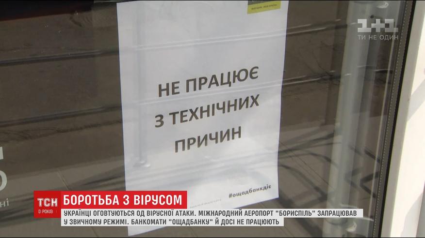 В частности, в "Ощадбанке" не работают банкоматы. Там ТСН заявили, что рекомендуют клиентам снимать наличные из банкоматов других финансовых учреждений. Однако, за эту услугу потребители платить комиссию. Между тем оправились от атаки в международном аэропорту "Борисполь". Для пассажиров уже доступна информация онлайн, табло на сайте работает.