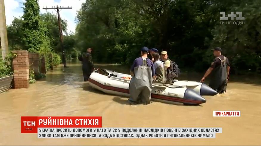 Украина просит НАТО и ЕС помочь в преодолении последствий наводнения в западных областях. В министерстве иностранных дел заявили: рассчитывают на активацию Механизма гражданской защиты Евросоюза и привлечения Евроатлантического центра НАТО по реагированию на природные катастрофы. Между тем на Прикарпатье и Буковине ливни прекратились. А вода постепенно отступает. Люди приходят в себя от пережитого, однако у спасателей еще много работы.