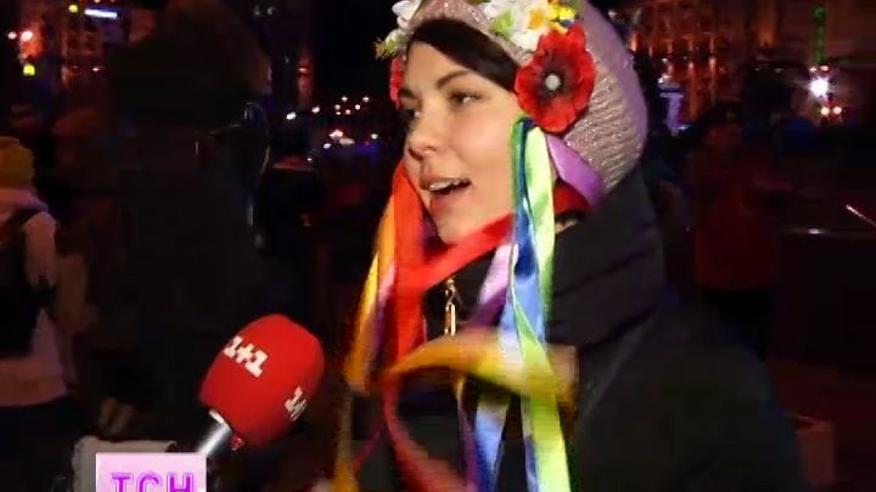 Желто-голубые цвета - флаги и ленты, лыжные костюмы и венчики. В центре столицы теперь постоянно звучит Гимн Украины и другие патриотические песни, люди танцуют, скачут, обнимаются.