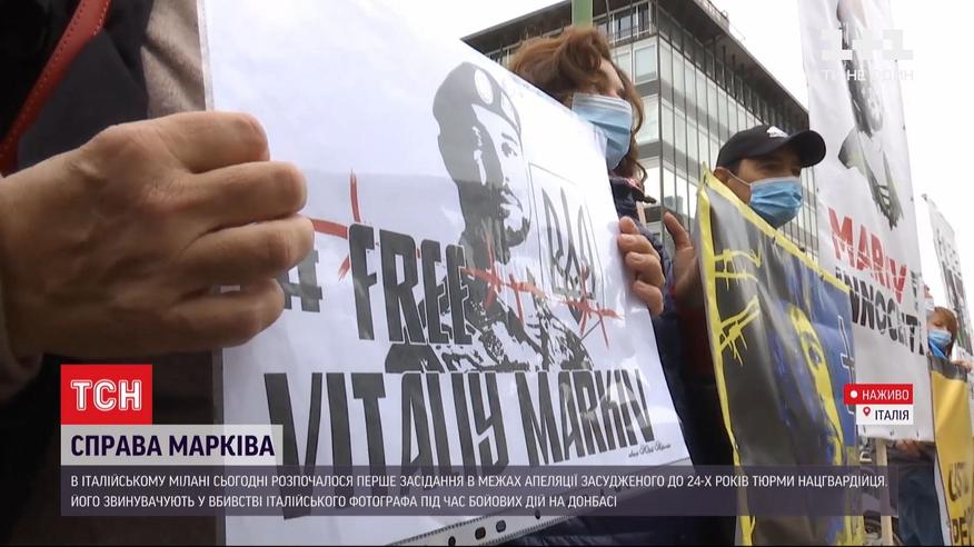 Апелляция Виталия Маркива - в эти минуты в Милане начинаются слушания по делу украинского нацгвардейца. В его поддержку под зданием суда устроила акцию украинская община Италии. Призывает пересмотреть приговор и освободить украинца. В прошлом году суд города Павия признал Маркива виновным в причастности к убийству на Донбассе итальянского фотографа Андреа Рокелле. Тогда судьи не учли ни один аргумент защиты и осудили украинца до 24-х годов. Киев подчеркивает - Маркив не виноват. За судебным заседанием следит ТСН.