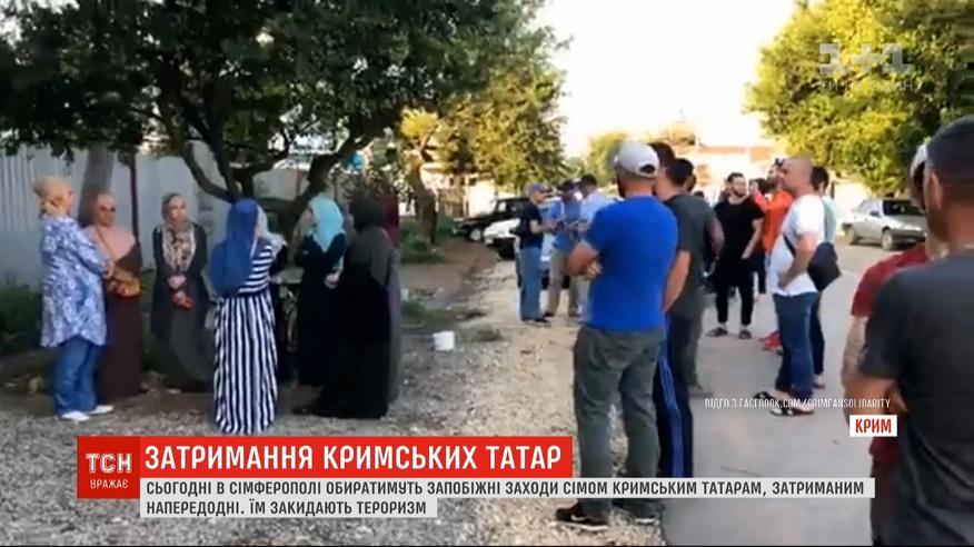 Меры предосторожности крымским татарам, которых российские власти обвиняют в терроризме, сегодня будет выбирать оккупационный "суд" в Симферополе. Одному из крымских татар присудили домашний арест еще вчера. Задержали их накануне после масштабного рейда по четырем районам аннексированного полуострова. В украинском МИД тем временем заявили, что оккупанты репрессируют жителей Крыма по религиозному признаку.