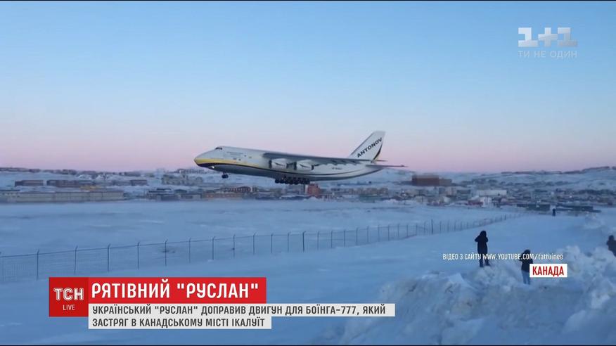 АН-124 доставил в канадский город Икалуит за полярным кругом авиадвигатель для Boeing 777. Проблемы с мотором возникли у самолета, летевшего из Цюриха в Лос-Анджелес. Чтобы предотвратить катастрофу, пилоты посадили машину в Канаде. Доставить тяжелый и дорогой груз "Руслан" смог в течение нескольких дней.