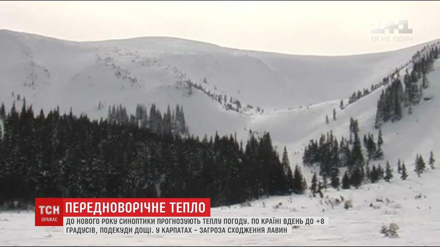 Вместо мороза - до плюс восьми, а вместо снега - местами дожди. Такой прогноз синоптиков до 31 декабря. Из-за оттепели спасатели призывают быть особенно осторожными тех, кто сейчас в горах. В Карпатах значительная опасность лавин.