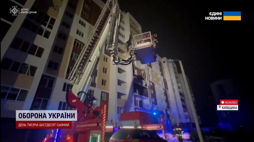 Очередная атака россиян по Киевской области, враг Шахедом попал в жилую 9-этажку в Вишневом. В результате вражеских действий разрушены балконы, лестничная площадка и выбиты окна в новеньком доме! На месте трагедии работают все оперативные службы. Также там находится и корреспондент ТСН Марьяна Бухан.