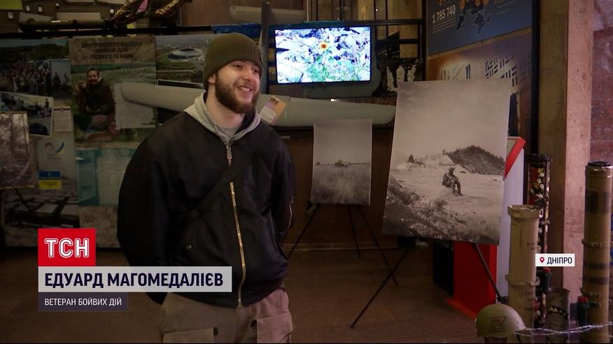 Добровольцем пошел защищать Родину и едва не погиб в день Независимости Украины. Эдуард Магомедалиев боец штурмовой бригады "Лють" в 23 года потерял ногу, однако после ранения службу не оставил. Как может помогает собратьям. На фронте парень открыл в себе талант фотографа - снимал сослуживцев, а сейчас фотографии собрал в небольшую выставку. Ее презентовал в музее российско-украинской войны. Журналистка ТСН Анастасия Неверная видела.