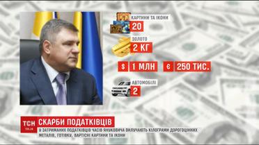 Глава МВД отчитался, что во время обысков дома у бывших высоких чинов обнаружили 3 килограмма 700 граммов золота, 50 килограммов серебра и наличные - почти четыре миллиона гривен, 5,5 долларов и 280 тысяч евро. А еще более 2 сотни ювелирных изделий и произведений искусства. Того, у кого изъяли больше, задержать не удалось. Бывший заместитель руководителя Государственной налоговой службы Олег Низко еще 2014 бежал в Испанию.