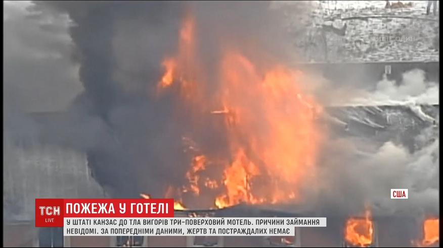 В американском штате Канзас дотла выгорел трехэтажный мотель