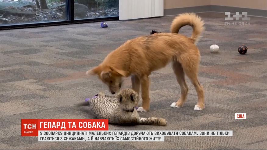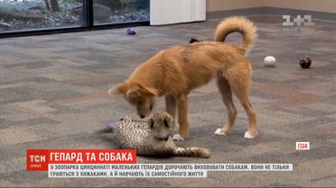 В американском зоопарке маленьких гепардов поручают воспитывать собакам