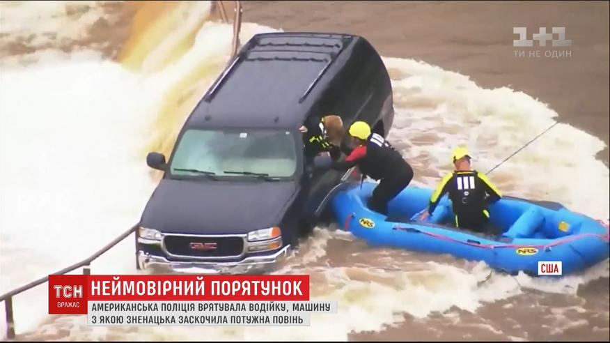В американской Оклахоме спасатели освободили женщину с залитой наводнением машины