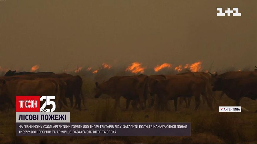 Самый масштабный пожар за всю историю Аргентины. На северо-востоке страны горят 800 тысяч гектаров леса. Пламя быстро распространяется. В сутки охватывает около 30 тысяч гектаров. Более тысячи пожарных и армейцы пока не в состоянии удержать это движение. Мешают сильный ветер и жара.