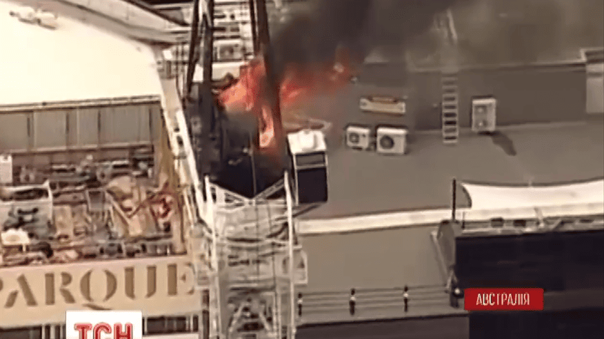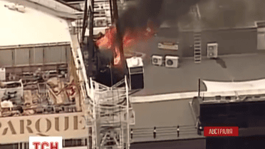 В Австралии строительный кран загорелся и упал прямо на улицу