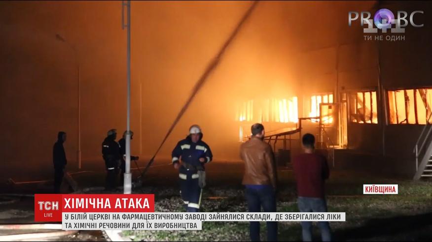 На Киевщине считают убытки от пожара на фармацевтическом предприятии. Возгорание произошло накануне вечером на складе, там хранили готовые лекарства и химические вещества для их производства. Огонь охватил 2,5 тысячи квадратных метров. По предварительным данным, материальные потери могут достичь миллионов долларов.