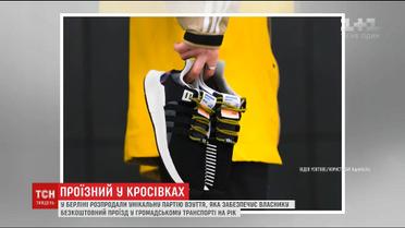В начале января одна известная торговая марка спортивной одежды и обуви и общественный транспорт Берлина выпустили уникальную пару кроссовок с проездным талоном на язычке. Этот проездной позволяет круглый год кататься в метро, автобусах и трамваях города. Цена кроссовок 180 евро, а годовой билет стоит 25 тысяч гривен.