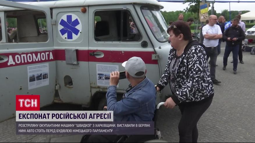 В Берлине выставили расстрелянную скорую из Харьковской области