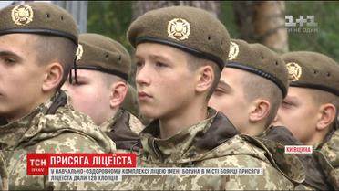 В Боярке младшие ученики лицея имени Ивана Богуна получили погоны и обереги от родственников погибших бойцов