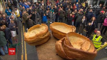 Это традиционное британская блюдо. Этот турнир проходит на севере страны почти век подряд. Участникам нужно бросить черный пудинг на постамент из пудингами йоркширскими, и сбить как можно больше из них. Черный пудинг изготавливают из теста, свиной крови, сухарей и шкварок.