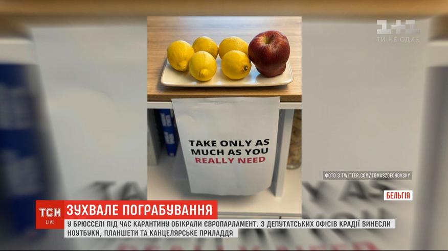 В Брюсселе во время карантина ограбили депутатские офисы в Европарламенте. Вынесли ноутбуки, планшеты и канцелярские принадлежности. Многие из парламентариев жаловались, что воры поломали сейфы и покопались в рабочих бумагах в поисках ценностей. В целом обокрали с полсотни кабинетов. Некоторые восприняли это с юмором. К примеру, один из польских депутатов в своем твиттере выложил просьбу к ворам брать только необходимые вещи и пользоваться перчатками.