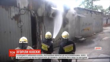В центре Днепра загорелись металлические киоски
