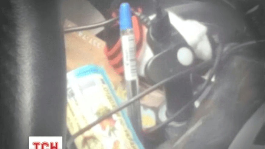 Киевляне прямо в центре города заметили авто с российскими номерами и оранжево-черной символикой. И заблокировали водителю и его спутнице проезд - пока не прибыли патрульные. Гостей пригласили в полицейский участок, к общению присоединились работники СБУ. Силовикам приезжие рассказали, что в Украину приехали к родственникам, ленту на авто комментировать отказались.