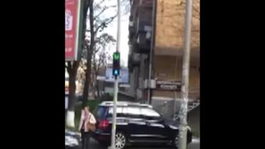 В центре Киева пешеходы перебегают дорогу из-за сломанного светофора