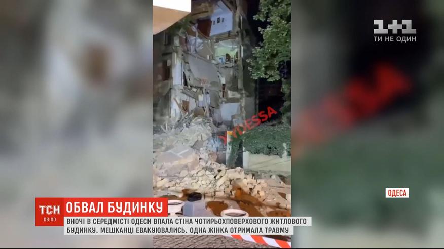 Новый обвал в Одессе. На рассвете в центре упала стена четырехэтажного жилого дома. Люди рассказывают, вдруг услышали, что дом трещит, и начали выбегать на улицу, кто в чем был. Одна из женщин получила травму. Ее забрали в больницу. Известно, что в доме повреждены пять квартир