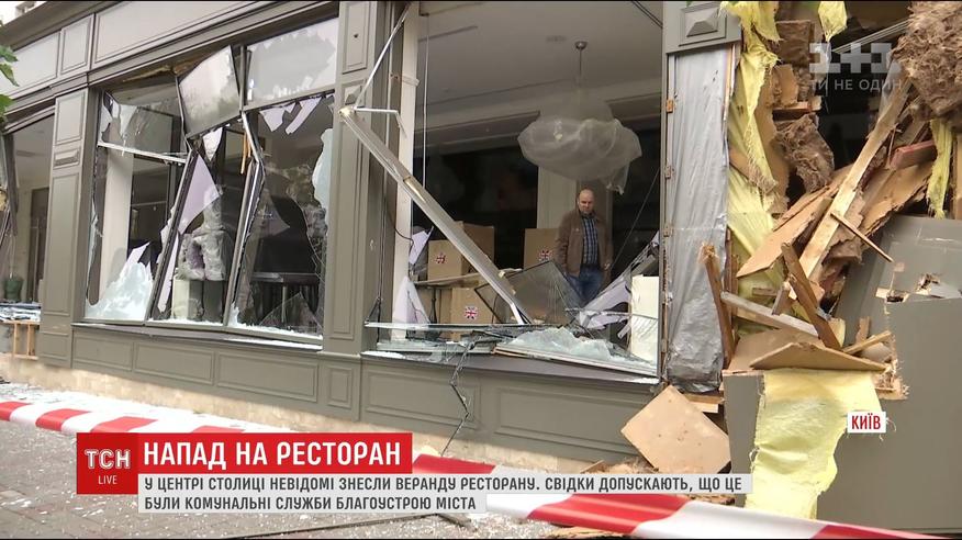 В центре столицы неизвестные разрушили летнюю террасу ресторана