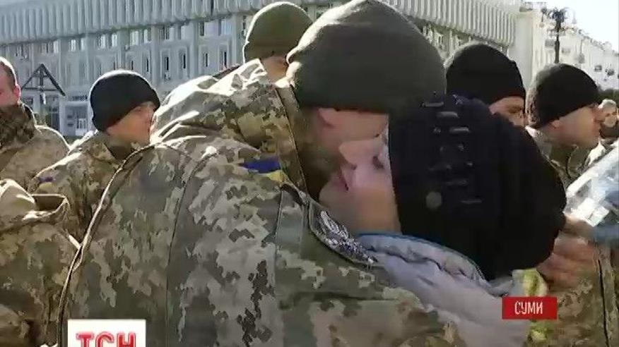 Военные 15-го отдельного мотопехотного батальона 58 бригады 11 месяцев стояли на передовых позициях в Ясиноватой и Авдеевке. Сейчас бригаду вывели из зоны АТО. Уже третий день подряд бойцы вместе с техникой эшелонами возвращаются в Сумскую область. Но в марте следующего года они снова отправятся на Восток. В Сумах в центре города героев встречали родные и друзья. За время боевых действий на востоке батальон потерял девять побратимов. Их память почтили минутой молчания.