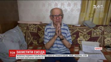 Соседи стали на защиту 91-летнего деда. Люди уверены - он стал жертвой аферистов. Поэтому забаррикадировались вместе с ним и не пускают на порог судебных исполнителей. Его жена продала квартиру неизвестным людям накануне своей смерти. Но денег так никто и не видел.