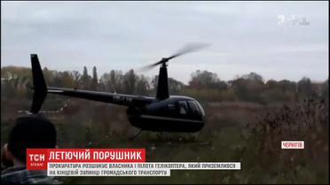 Очевидцам удалось заснять полет вертолета над жилым микрорайоном. Частный вертолет приземлился на пустыре возле конечной остановки общественного транспорта. Внутрь зашел мужчина с двумя пакетами и полетел дальше. В черниговской прокуратуре отмечают, что пустырь, на котором приземлился вертолет, не приспособлен для полетов, там нет вертолетной площадки, а это значит, что имело место быть нарушение правил безопасности движения воздушным транспортом.
