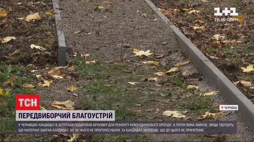 В Черновцах кандидат в депутаты подарил людям брусчатку для ремонта, а потом она исчезла