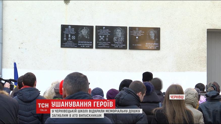 В Черновцах открыли мемориальную доску трем погибшим в АТО