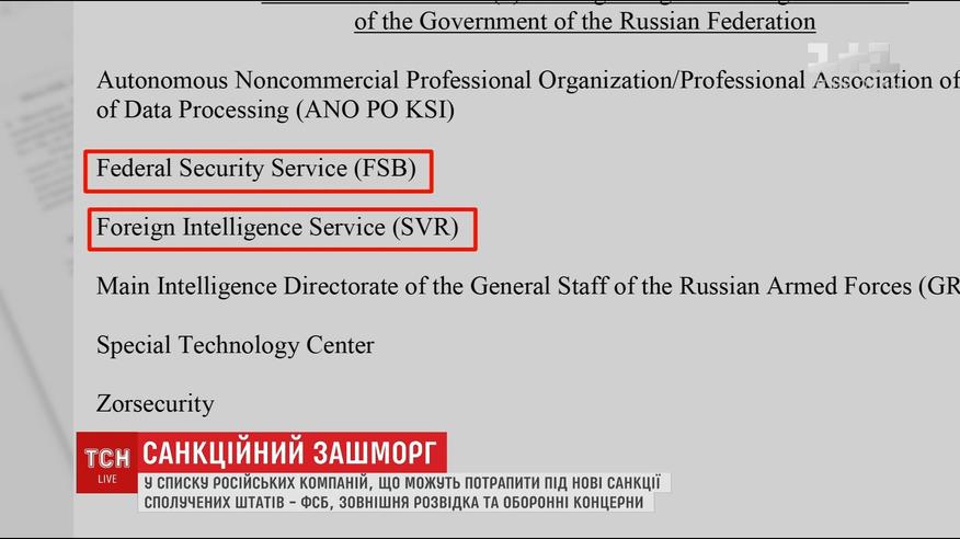 Государственный департамент подготовил перечень учреждений, которые могут попасть под экономическое давление со стороны США из-за событий в Украине и вмешательства Москвы в американские выборы. В документе - концерн "Калашников", Оборонпром и Рособоронэкспорт, через который Москва продает оружие за границу. Упомянутые в списке и спецслужбы ФСБ и служба внешней разведки.
