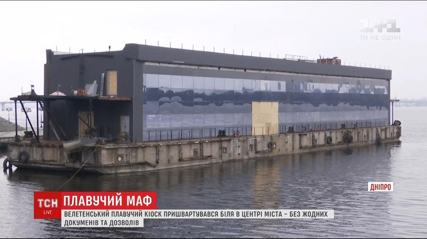 Огромный МАФ на барже приток и пришвартовался в самом центре города. Такое появление киоска-гиганта ошеломила не только днепрян, но и мэрию. Ведь ни одного документа на захват берега и реки нет, убеждает власть, и даже угрожает отправить нелегала течением прочь.