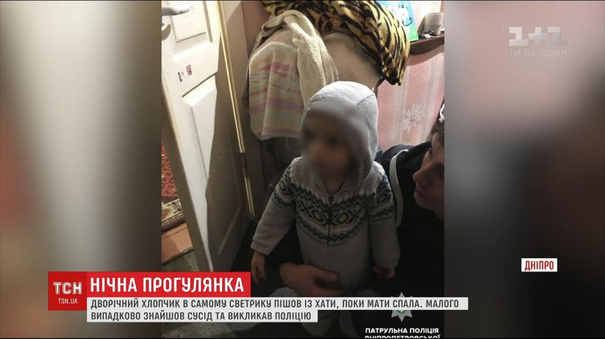 В Днепре двухлетний ребенок в самом свитере ночью гулял по городу, пока мама спала