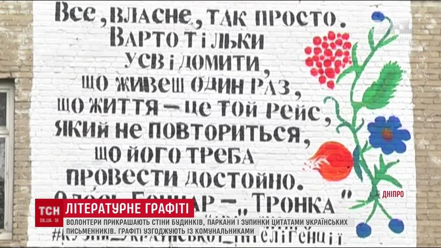 В Днепре город начали расписывать граффити-цитатами украинских писателей