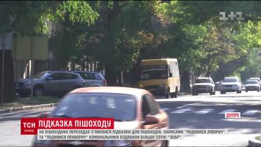 В Днепре на пешеходных переходах появились подсказки для пешеходов