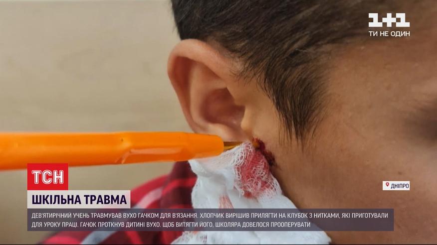 Попал на крючок, да еще и ухом - в Днепре школьник получил необычную травму. На перемене девятилетний мальчик решил отдохнуть и положил голову на клубок с нитками, которые подготовили для урока труда. Внутри был спрятан крючок для вязания, он проткнул ребенку ухо и застрял. Ребенка с окровавленной головой срочно доставили в больницу. Медики прооперировали мальчика и констатируют - ему крупно повезло.