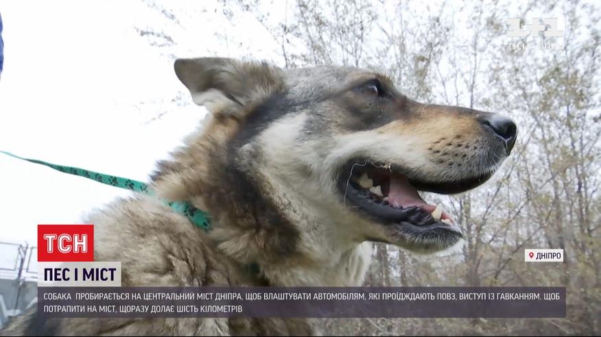 В Днепре собака устраивает перформансы на центральном мосте
