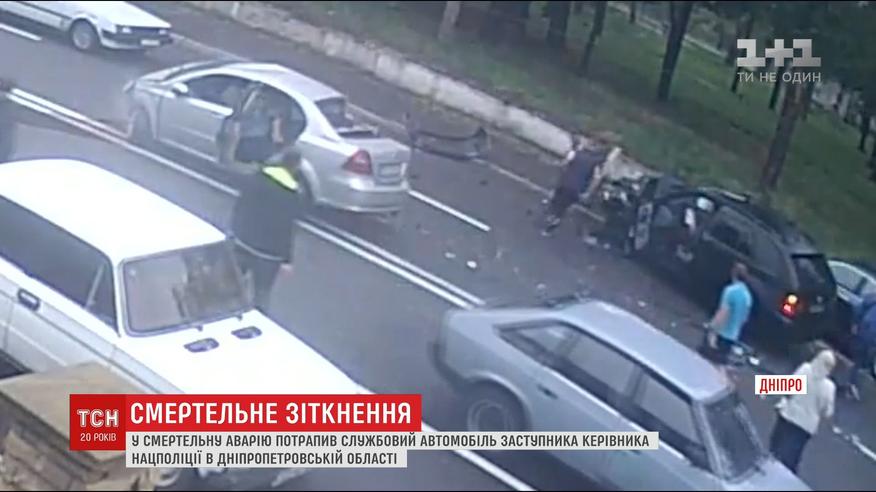 В Днепре в служебное полицейское авто въехал легковой автомобиль, один человек погиб