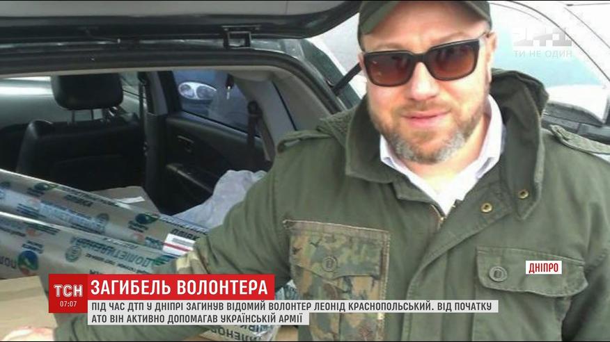 По данным ТСН, в автомобиле, в который на повороте въехал внедорожник, находился Леонид Краснопольский. От полученных травм Краснопольский скончался на месте. С начала АТО даже из оккупированного Донецка он активно помогал украинской армии, из-за это попал в плен боевиков так называемой "ДНР". После освобождения переехал в Днепр. Помогал доставлять на передовую нужные украинским бойцам вещи.