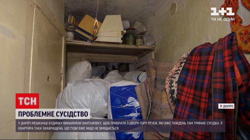 Квартира, заваленная хламом к потолку. А гора у подъезда – то, что не влезло. В Днепре в свой дом вернулась пожилая женщина. Соседи говорят – жилье она загромождала добрый десяток лет. Затем переехала в дом неподалеку. Местные с облегчением вздохнули. Однако на днях появилась снова. А с ней и три газеля пожитков.