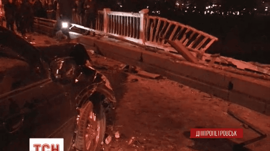 В Днепропетровске машина пробила ограждение и слетела с моста