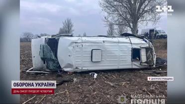 ДТП с маршруткой на Днепропетровщине. Четыре человека погибли, 12 пассажиров и водитель травмировались. Авария произошла накануне. Микроавтобус, который вез людей в Павлоград, вылетел с трассы и перевернулся. Передняя часть маршрутки сильно пострадала. 4 пассажира погибли, 13 человек получили травмы различной степени тяжести. Детали - в ТСН.