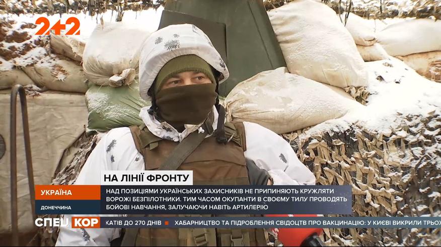 Чуть ли не впервые за последние несколько лет на фронте воцарилась чуть ли не сплошная тишина! Ни обстрелов, ни подходов диверсионно-разведывательных групп противника наши армейцы, утверждают, не фиксируют уже вторые сутки подряд. В то же время, над позициями украинцев не прекращают кружиться беспилотные разведчики и в своем тылу оккупанты сейчас активно проводят боевые учения. Привлекают даже артиллерию – говорит Марьяна Бухан, ведь эхо мощных разрывов долетает до передовой.