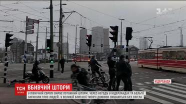 В Нидерландах и Бельгии из-за урагана погибли три человека. Скорость ветра в некоторых городах достигла 140 километров. Мощный вихрь буквально сдувал машины и сбивал с ног прохожих. Стихия накрыла и Великобританию. Тысячи британцев остались без света. В Германии пока готовятся к сильной метели.