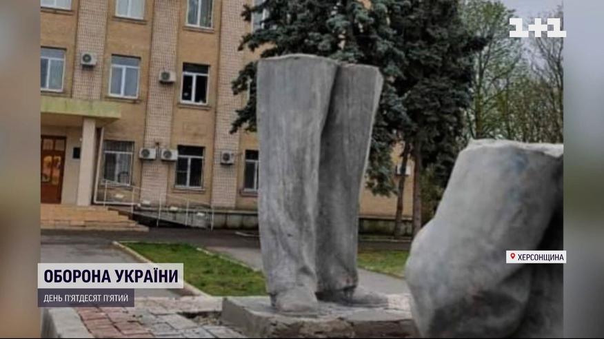 Его смонтировали за день из нескольких частей и разместили на новом постаменте возле райгосадминистрации, где сейчас руководят россияне. Откуда свезли Ленинские останки – неизвестно. Местные говорят, что это не тот памятник, который снесли в 2015 году. Геническ россияне оккупировали в первые же дни полномасштабного вторжения, на админзданиях сейчас – триколор и красный советский флаг. Российскую и советскую символику оккупанты вывешивают по всей области.