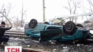 В Горловке машина упала с моста на железнодорожные пути