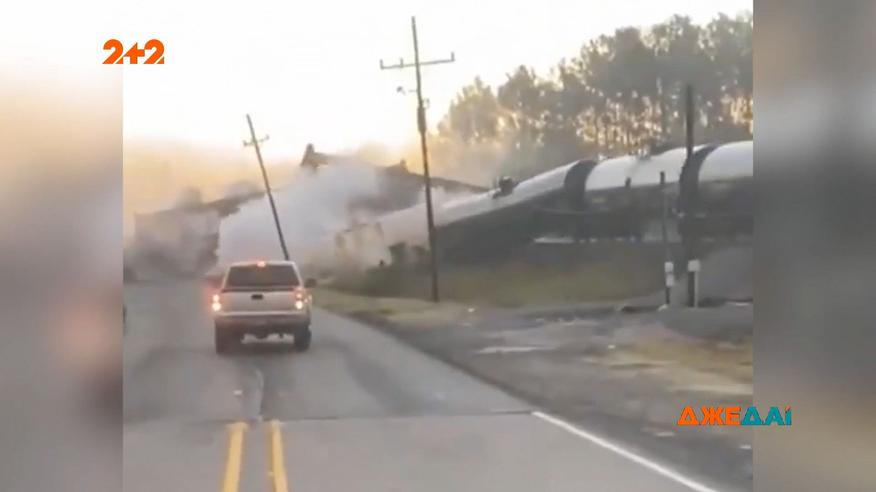 В городе Морисвилл в штате Техас грузовой поезд на 25 вагонов сошел с рельсов