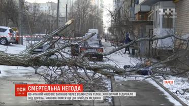 В Харькове мужчину убила ветвь, которую ветром оторвало от дерева. Накануне в городе поднялся шквальный ветер, а иногда даже пошел снег. Порывом ветра от акации оторвало огромную ветку, которая упала прямо на прохожего. 60-летний мужчина скончался еще до приезда медиков.