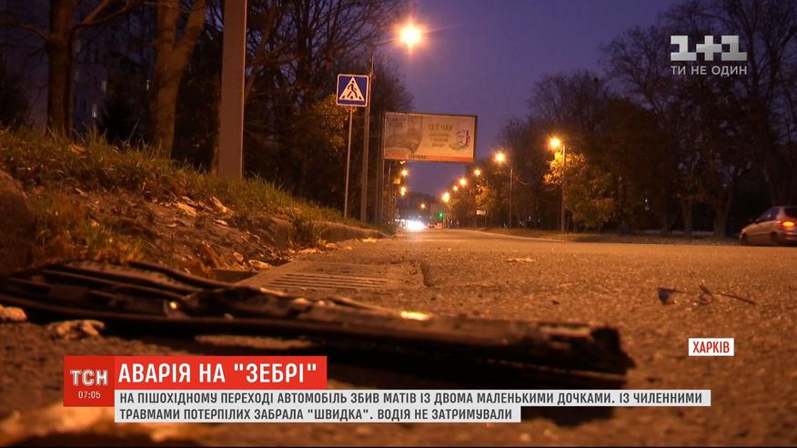 В Харькове автомобиль на пешеходном переходе сбил женщину с двумя детьми